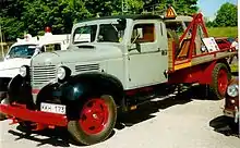 After Dodge supplied the U.S. Army with its first four-wheel drive truck in 1934, more modern 1+12-tonners were developed, and 1,700 RF-40-X-4(USA) trucks were supplied in 1938, and 292 TF-40-X-4(USA) in 1939.[17][18] In 1940, Dodge gained an Army contract to design and build 12-ton 4×4 military trucks in several styles using many commercial truck parts. Based on the VC-Series, and internally called the T-202 series, the VC-1 through VC-6 came with essentially stock front-end sheetmetal. Similarly, their 116-inch wheelbase and 201-cubic-inch 79-horsepower six-cylinder engine shared much with Dodge's civilian 12-ton VC. The following year, the T202 was replaced by the T-207 series trucks. Again rated as 12-tonners, they featured a military-specific hood, grille, and fenders. These trucks were powered by the 218-cubic-inch six of 85 horsepower taken from Dodge's 34- and one-ton commercial models.[14] Eventually, the military trucks were substantially redesigned, and uprated to 34-tons with a 230-cubic-inch engine producing 92 hp. Together with the 12-tons of 1941, these were built from 1942 until the end of the war as the Dodge WC series military trucks. Some 30 were modified as armored trucks by the French in Syria prior to WWII and known as the Automitrailleuse Dodge Tanake.[19] The Tanake was fitted with a 37mm cannon M1916 and two or three FM 24/29 light machine guns and a crew of 5.[20] The vehicles served with French Foreign Legion, both Vichy and Free French units during WWII and post-war used by the Syrian government in the 1948 Arab–Israeli War.[19]