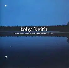 "Does That Blue Moon Ever Shine on You", or simply "Blue Moon", is a song written and recorded by American country music artist Toby Keith. It was released on February 27, 1996 as the lead single from his 1996 album Blue Moon. The song peaked at number 2 on the US Billboard Hot Country Songs chart and reached number 9 in Canada. Keith wrote the song in 1987,[1] and first released it that year on an independent label.[2][3] It is the first lead single by Keith that does not feature as the opening track.