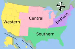The Dominican Order (Order of Preachers) has four provinces of Friars established in the United States. Each province is divided according to the states in its geographical region.[2] As of 2016, there are 593 professed members of the US provinces.[3]