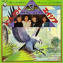"Don't Cry" is the first hit single from progressive rock band Asia's second album Alpha. "Don't Cry" reached #10 on the Billboard Hot 100 and #9 in Cash Box magazine. It was the band's second Top 10 Pop hit, and returned them to #1 on Billboard's Top Album Rock Tracks chart.