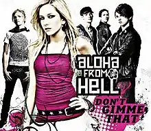 "Don't Gimme That" is a song written by Rory O'Connor for German group Aloha from Hell's 2009 debut album No More Days to Waste. It was released as the album's first single on June 6, 2008. The song reached number thirty and number eleven in the German and Austrian Singles Charts respectively.