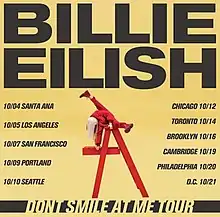 The Don't Smile at Me Tour (stylized as dont smile at me tour) was the first headlining concert tour by American singer-songwriter Billie Eilish. It was launched in support of her debut EP Don't Smile at Me (2017), and consisted of 10 concerts in the United States and one in Canada. The tour was announced in July 2017, with dates being released at the same time. The set list featured all of the songs from Don't Smile at Me. The tour was positively received by critics.