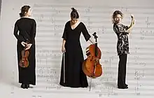 Prior to "Don't Talk", Wilson had rarely used string sections in his work.[23] In this song, he augmented the basic track with an overdubbed string sextet (four violins, one viola, and a cello) in pursuit of a "dark, expressive" effect that Granata compares to "the sound favored by Johannes Brahms".[21] Record producer Phil Ramone said of this song, "Though [Brian] might not have studied Brahms or Ravel, he heard them in his head. That is evident in these chords, and the way they were voiced. It was unusual for pop music at that time."[21] Violinist Nancy Ciminnisi commented,