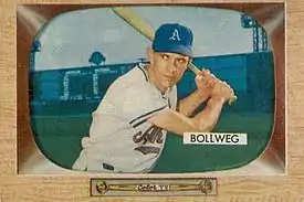 Donald Raymond Bollweg (February 12, 1921 – May 26, 1996) was an American professional baseball player who appeared in 195 games in Major League Baseball as a first baseman and pinch hitter for three teams between 1950 and 1955. Born in Wheaton, Illinois, Bollweg threw and batted left-handed; he stood 6 feet 1 inch (1.85 m) tall and weighed 190 pounds (86 kg).