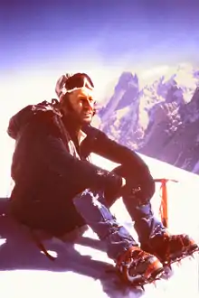 ![]() Don Morrison during the first ascent of Pamshe in the Himalayas in 1975 | |