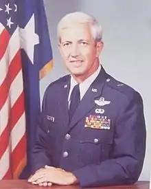 He entered active duty in March 1956 and was awarded his wings in May 1957. As a young pilot, he was a member of the famed 8th Tactical Fighter Squadron, the Black Sheep. He served as a fighter pilot in Vietnam in 1968–1969, flying 275 combat missions.