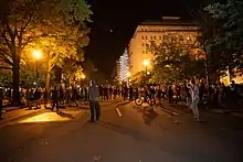 - About 6:45 p.m.: Protesters are forced south along 17th Street. Several CS gas grenades are deployed by the Metropolitan Police Department on 17th Street between H Street and Pennsylvania Avenue.[72][17]