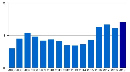 | 2019 | 1,407,862 | 17,647 | 23,043 |