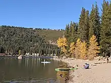 ![]() Donner Lake, with Donner Memorial State Park at the far end, right, viewed from near Donner Peak | |