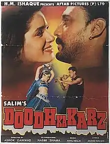 Doodh Ka Karz (English: Debt of milk) is a 1990 Indian Bollywood action drama film directed by Ashok Gaekwad and produced by Salim Akhtar. The film was dubbed in Marathi as Dudhache Upkar. It stars Jackie Shroff and Neelam Kothari in pivotal roles.[1]