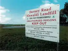 - 1 2 "National Oil and Hazardous Substances Pollution Contingency Plans; National Priorities List: Deletion of the Dorney Road Landfill Superfund Site". www.federalregister.gov. Federal Register. Retrieved 24 January 2021.