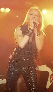 - ↑ "Saxon feat. Doro Pesch - Denim and Leather (live)". 14 June 2011. Retrieved 14 August 2012 – via YouTube.