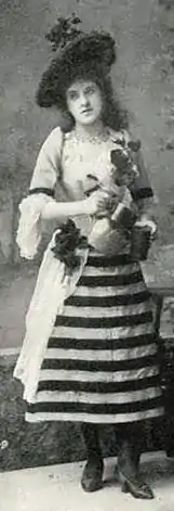 Dorothy also toured and enjoyed numerous revivals in Britain until at least 1908,[4] with four or five separate and simultaneous companies during the early years. Decima Moore played the title role in the 1892 revival. Courtice Pounds played Wilder on a 1900 provincial tour.[5] There was also a New York run from 5 November 1887 to April 1888 starring Lillian Russell as the title character, and the show was revived in America until about 1900. A successful tour of Australia also began in 1887, with Leonora Braham making her Australian debut,[11] followed by an 1888 production starring Nellie Stewart and more revivals into the 1890s.[12] John D'Auban choreographed a West End revival in 1892 at the Trafalgar Square Theatre.[13]