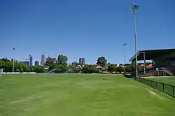 ![]() Looking south at the grandstand with the Perth CBD in the background | |