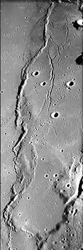 Dorsa Aldrovandi is a wrinkle ridge system at 23°36′N 28°42′E / 23.6°N 28.7°E in Mare Serenitatis on the Moon. It is about 127 km long and was named after the 16th century Italian naturalist Ulisse Aldrovandi.[1] The north end of the feature is at the crater Le Monnier, and the south end is close to the craters Clerke and Abetti.
