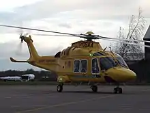 The service operates an AgustaWestland AW169 helicopter, callsign Helimed 10, which has been in service since June 2017.[2] Travelling at speeds of up to 165 knots (190 mph; 306 km/h), it can land in an area half the size of a tennis court and can reach anywhere in the two counties within twenty minutes of an emergency call.[3] It is crewed by one pilot, a paramedic and a critical care doctor and can carry two patients on stretchers. The pilots and maintenance staff are employed by Specialist Aviation Services, the company which leases the helicopter to the air ambulance service.[4] The paramedics are employed by South Western Ambulance Service (SWASFT), although a number of these are paid for by the charity,[4] while critical care doctors are seconded from local NHS hospital trusts.