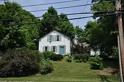 The Dorsey–Jones House is located south of the village center of Florence, on the north side of Nonotuck Street a short way east of Maple Street. It is a 1+12-story wood-frame structure, with a gabled roof and clapboarded exterior. It follows a plan known as "upright and wing", a common building plan of the period that was often used for millworker housing in the area. It is an L-shaped structure with a prominent front-facing gable end. The main entrance is in the rightmost of three bays on this section. A single-story ell extends to the right of this section, with an open porch across its front.[2]