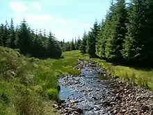 The Douglas Water (Scottish Gaelic: Dùghlas) is a river in Argyll in the southwest Scottish Highlands. It emerges from the northeastern end of the diminutive Loch Dubh-ghlas (56°12′07″N 5°12′48″W / 56.2019°N 5.2134°W) and flows northeastwards through Coire Dubh-ghlas, before turning east then southeast amongst extensive conifer plantations to the bridge which carries the A83 road over it. It then turns east at this point and flows into the tidal Loch Fyne (56°11′47″N 5°06′31″W / 56.1963°N 5.1086°W).[1]