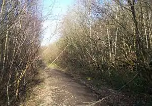 ![]() Poking through the undergrowth on the right are the remnants of Dovecliffe Station platform. | |