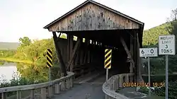 Downsville Bridge is a wooden covered bridge over the East Branch of the Delaware River in the hamlet of Downsville in Delaware County, New York. Designed by Scottish immigrant Robert Murray, the bridge was built in 1854, and is a single span, timber and plan framed bridge. The bridge measures 174 feet (53 m) long and 19 feet (5.8 m) wide.[2]:5