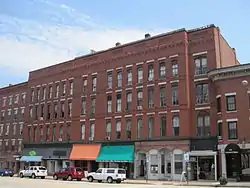 The Downtown Concord Historic District encompasses most of the commercial heart of downtown Concord, New Hampshire, United States. Incorporated in 1734, Concord became the state capital in 1808 and the seat of Merrimack County in 1823. Economic growth followed, due in part to these government institutions and also to the rise of industry along the Merrimack River, which flows through the city east of the downtown area, and the arrival in the 1840s of the railroad. The New Hampshire State House was built in 1819 south of the traditional center of the city (now the Concord Historic District), and the commercial heart of the city began to take shape along the First New Hampshire Turnpike south of the State House (now Main Street).[2] The district was listed on the National Register of Historic Places in 2000.[1]