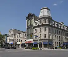 Downtown Guelph is the central business district of Guelph, Ontario, Canada. It is bordered by Wellington St. E. to the south, Woolwich St. to the East, Dublin St. to the west and Norwich St. to the North. Downtown Guelph is known for its distinctive limestone architecture and heritage buildings. Many of Guelph's historically designated properties are in or near the downtown area.[1]