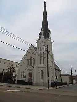 Downtown Portsmouth Historic District, also known as the High Street Corridor Historic District, is a national historic district located at Portsmouth, Virginia. It encompasses 229 contributing buildings, 1 contributing site, 4 contributing structures, and 1 contributing object in the central business district of Portsmouth. The district encompasses the original 1752 plan of the Town of Portsmouth and includes portions of expansions of the original boundaries dating to 1763 and 1909. It includes a variety of commercial, government, and institutional buildings, with most dating to the years around the turn of the 20th century. Notable buildings include the Captain Baird House, Vermillion Manor (1840), City Hall Building (1878), former United States Post Office (1907-1908), First Presbyterian Church (1877), First United Methodist Churches (1882), St. James Episcopal Church, Ebenezer Baptist Church, YMCA building, Tidewater Building, Southern Aid Building, Colony Theater, Lyric Theater, Blumberg's Department Store, Mutual Drug Company (1946), the New Kirn Building, and the Professional Building. Separately listed are the Commodore Theatre, Portsmouth Courthouse, Pythian Castle, St. Paul's Catholic Church, and Trinity Episcopal Church[3]