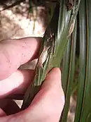 Adults are on the wing all through the year.[4] They have been observed resting, in a head down position, on Nikau palms.[4] Often adults can be observed near the cocoons of their larvae.[4] Although they are nocturnal they are only occasionally attracted to light.[4]