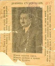 Dragiša M. Stojadinović (Serbian Cyrillic: Драгиша Стојадиновић, 1886–1968), known by his nom de guerre Krajinac (Крајинац), was a Serbian soldier, lawyer, politician, photographer and filmmaker.[1]