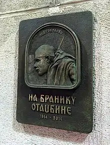 A memorial plaque with the famous image has been on display on the Veterans' Club Building in Belgrade since February 2015, where it was unveiled by then Serbian President Tomislav Nikolić for Statehood Day with the presence of general Ljubiša Diković, Chief of the Serbian General Staff, and Bratislav Gašić, Minister of Defence. The artist of the plaque was Mirko Mrkić Ostroški.[10]