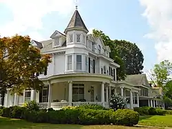 Draper House is a historic home located at Milford, Sussex County, Delaware. It was built in 1870, and is a two-story, five-bay, center hall, frame dwelling originally built in the Victorian Gothic style. It was remodeled in the early-20th century with elements of Queen Anne and Classical Revival building traditions. It has a hipped roof with dormers, a telescoping turret, a truncated tower, a second floor projecting bay with a Palladian window, and a full three-sided porch with a shadow curve supported by Ionic order columns. From 1948 to 1953, it was owned by the Milford Hospital and used by them as housing for nurses.[2]