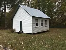 The Drayden Schoolhouse was a small, one-room African American children's school featuring grades 1–7. It was open and operational from 1890 to 1944. The land was donated by Mary Ellen and Daniel A. Gross in 1889. The schoolhouse was a one-room design based on a Victorian design like other one-room schools already operational in St. Mary's County. The original green paint is still inside the structure. Exterior paint was added in 2000 to preserve the original sliding planks.