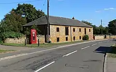 Drayton is one of 62 conservation areas[3] within the Harborough District of Leicestershire. The Conservation Area embraces the area of the village around the village green together with the older part of the village along the road to Great Easton. Blocks of later development on the Great Easton Road and the Nevill Holt Road are excluded as the style of buildings does not contribute to the traditional feel of the village. The Conservation Area includes the traditional and newer buildings around the green and along Hall Lane and the main street towards Great Easton. Visually the most dominant part of the Conservation Area is around the open space of the village green which gives cohesion to the settlement. From the Medbourne Road the entrance to this open area is sudden and is firmly defined by a former farmhouse and its agricultural buildings. These extend partially along one side of the triangular Green. Open roads run on each of the three sides of the green in whose centre is the tiny single-cell Church of St James.[4]