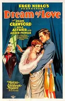 Dream of Love is a 1928 American silent biographical drama film directed by Fred Niblo, and starring Joan Crawford and Nils Asther. Due to the public apathy towards silent films, a sound version was also prepared. While the sound version has no audible dialog, it was released with a synchronized musical score with sound effects using both the sound-on-disc and sound-on-film process. The film is based on the 1849 French tragedy Adrienne Lecouvreur by Eugène Scribe and Ernest Legouvé.[2]