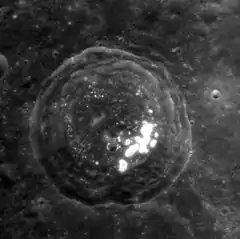 ![]() MESSENGER NAC. Bright spots are hollows. | |