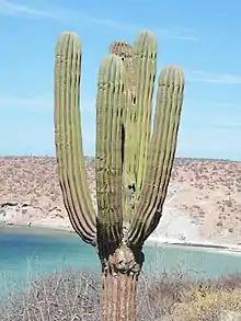 A cardón cactus (Pachycereus pringlei) found in the Baja Peninsula, Sonoran Desert.
