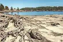 Low tide reveals the eroded sandstone beach at Drumbeg Provincial Park (2017)