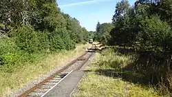 In 1967 the passing loop was lifted and the signal boxes were closed. The wooden station building was a Great North of Scotland Railway design however the old wooden footbridge had been replaced by a LNER metal design fabricated from old rails and signal wire.[5]