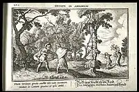 According to the first, Apollo seduced her by a trick. While Dryope tended the flocks of her father on Mount Oeta, she became the playmate of the hamadryads of the woods on Mount Oeta. The nymphs taught her to sing hymns to the gods and to dance. On one occasion, Dryope was seen by Apollo. In order to win her favours the god turned himself into a tortoise, of which the girls made a pet. The nymphs played with the animal and when Dryope had the tortoise on her lap, Apollo turned into a snake. The nymphs then got scared and abandoned her, and Apollo raped her. Eventually she gave birth to her son Amphissus. Soon afterwards Dryope married Andraemon, son of Oxylus. Amphissus eventually built a temple to his father Apollo in the city of Oeta, which he founded. Here the nymphs came to converse with Dryope, who had become a priestess of the temple. Fond of her, they took her with them and placed a poplar tree in her place. They then turned her into a nymph. Two women of the town told the people that the nymphs had taken Dryope, so the nymphs turned them into fir trees.[4]