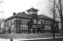 The Duane Doty School was named after former Superintendent of Schools for Detroit Duane Doty,[3] who was appointed to that post in 1865.[2] The original building was designed by Malcomson and Higginbotham, with construction starting in 1908[4] and ending in 1909. When it opened, the school contained 20 classrooms and was intended to hold 640 students from kindergarten through eighth grade.[2] An addition costing $134,300 was completed in 1921,[5] which added 320 students to the school's capacity. A gymnasium addition was constructed in 1928. In 1959, the building was substantially remodeled, and six new classrooms were added in the basement and first floor. By the end of 1960, enrollment in the school was 1,193 students.[2]