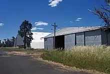 The eastern boundary of the site is defined by the line of the now disused Dubbo to Molong railway. This meant that short spur railway lines could be run to the site and into the two adjacent stores buildings, without the construction of a larger spur line which might have been visible from the air. The Mitchell Highway, the northern frontage of the site, is defined by a row of large trees, in contrast to the Palmer Street and High Street, western and southern, frontages which are dominated by callitris pine. Within the area the relief is less than five metres and slopes towards the north-east. The 30 buildings on site include five Igloo Stores buildings, three Bellman hangars, a Rabaul Store, a Sidney Williams Hut, a large semi-underground PBX bunker, a former Inflammable Liquids store, the Administration building and the Pump House, as well as the road system and railway spur lines.[1][8]