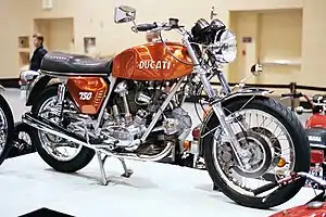 The Ducati 750 GT was a motorcycle made by Ducati from 1971 to 1974. Additionally there were 40 1978 750GTs manufactured. Total production of the 750GT over all years of manufacture was 4,133.[1] Designed by Fabio Taglioni, the motorcycle was the first Ducati to have a 90° V-twin engine configuration, which became a signature feature in the Ducati bikes that followed.