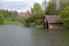 Whitmore's son, also William, added the old family name of Wolryche to his own. A man of enormous energy, he not only had an active career as a reforming M.P., but also greatly modified the house and grounds. In the hall his improvements include a fine Regency staircase, new windows, and a large new dining room – now the modern art gallery.[10] He also completely reshaped the landscape to the west, which forms the main view from the hall. The Big Pool was formed by combining three small lakes and terraces constructed, with small flights of steps and walls. To the south he broke the formality with the American Border, an area that was then planted mainly with rhododendrons but today contains a wide range of Asian and American plants.[11]