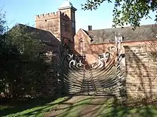 The Dudmaston estate has been in the Wolryche family or the barely related Wolryche-Whitmore family since 1403, when William Wolryche of nearby Much Wenlock acquired it by marriage to the heiress of the former owners, Margaret de Dudmaston.[1] It is likely that the medieval house was replaced by a structure on the site of the present building in the 16th century. This is shown in a stylised way on old maps as a fortified manor house. It is likely that the main source of income was sheep raising, an important part of the late medieval economy, in which the wool trade played a central role. Unlike many of the Shropshire and Staffordshire gentry, the Wolryches accepted the Reformation and became stalwart Anglicans, but were royalists, as loyal to the House of Stuart as to their Tudor predecessors.