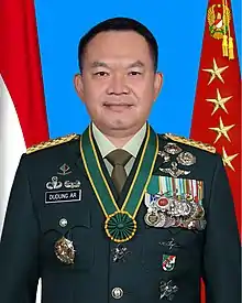 General Dudung Abdurachman OLH (born 19 November 1965) is an Indonesian Army general who previously served as the 33rd Chief of Staff of the Indonesian Army (Kasad). He graduated from the Indonesian Military Academy (Akmil) in 1988 beginning his career in the infantry. He was appointed as Commander of Kodam Jaya on 27 July 2020, then on 25 May 2021, appointed as commander of the Kostrad.[1][2][3]