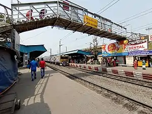 Dum Dum Cantonment is located on Sealdah–Hasnabad–Bangaon–Ranaghat line of Kolkata Suburban Railway. Link between Dum Dum to Khulna now in Bangladesh, via Bangaon was constructed by Bengal Central Railway Company in 1882–84. It was named by the cantonment area near Dum Dum.[2] The Sealdah–Dum Dum–Barasat–Ashok Nagar–Bangaon sector was electrified in 1963–64.[3]