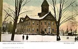 Dundas Central Public School is a primary school located in Dundas, Ontario. It teaches students kindergarten to grade 8. Dundas Central is the second oldest school in Ontario. Dundas Central celebrated its 150th Anniversary on June 16, 2007.[1]