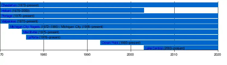 Lake Central High SchoolCrown Point High SchoolLa Porte High School (Indiana)Merrillville High SchoolMichigan City High SchoolValparaiso High SchoolPortage High SchoolChesterton High School