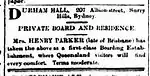 The next landlady was Mrs Mary Parker. She was the widow of Henry Parker who had died in 1993 in Queensland.[17] She advertised frequently in the Sydney Morning Herald for boarders and mentions that there was a tennis court.[18] One of her early advertisements is on the right.