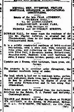 He established a large hat factory called Anderson and Co in Surry Hills. It was a five-story building right behind Durham Hall in Nichols Street.[19] It has since been demolished and replaced by residential units.